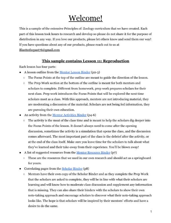 The Mentor Lesson Binder (34 pages) gives you an outline for your class. Feel free to change the lineup and create an experience that fits the needs of your class.